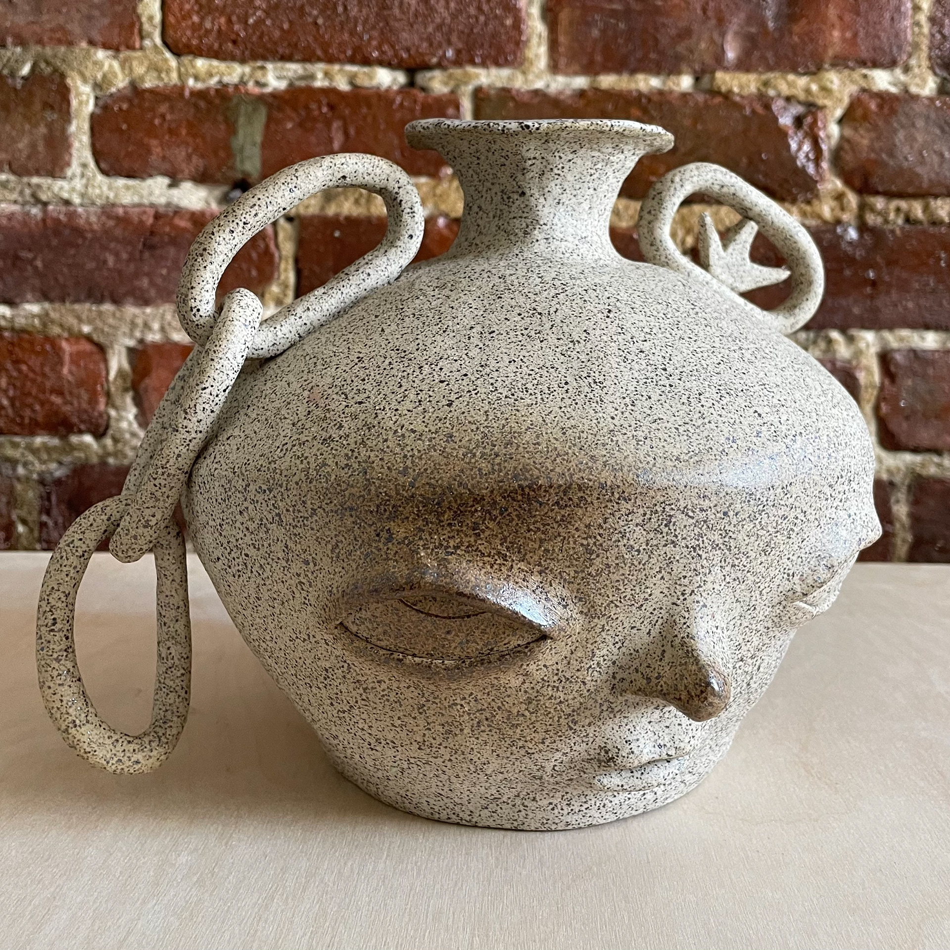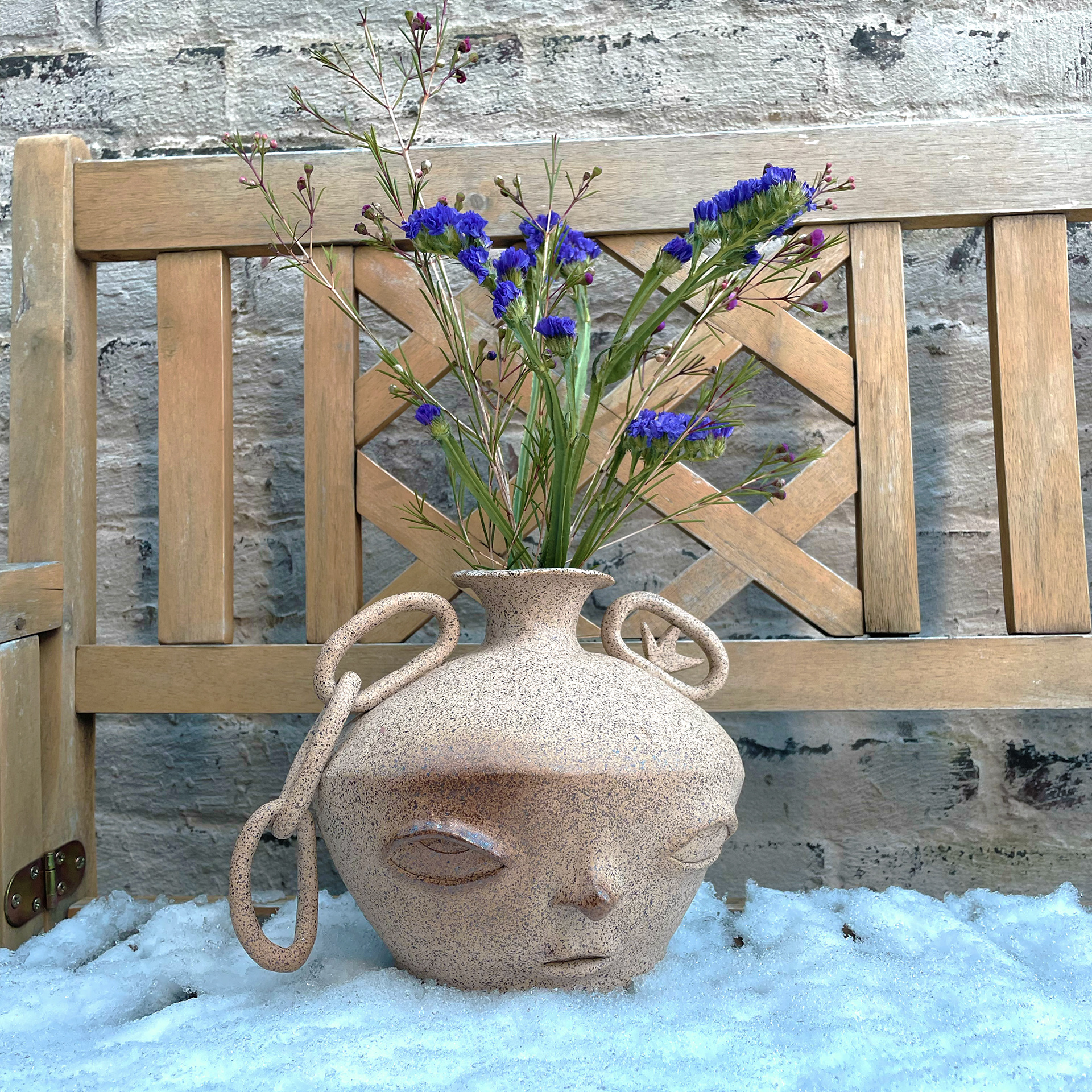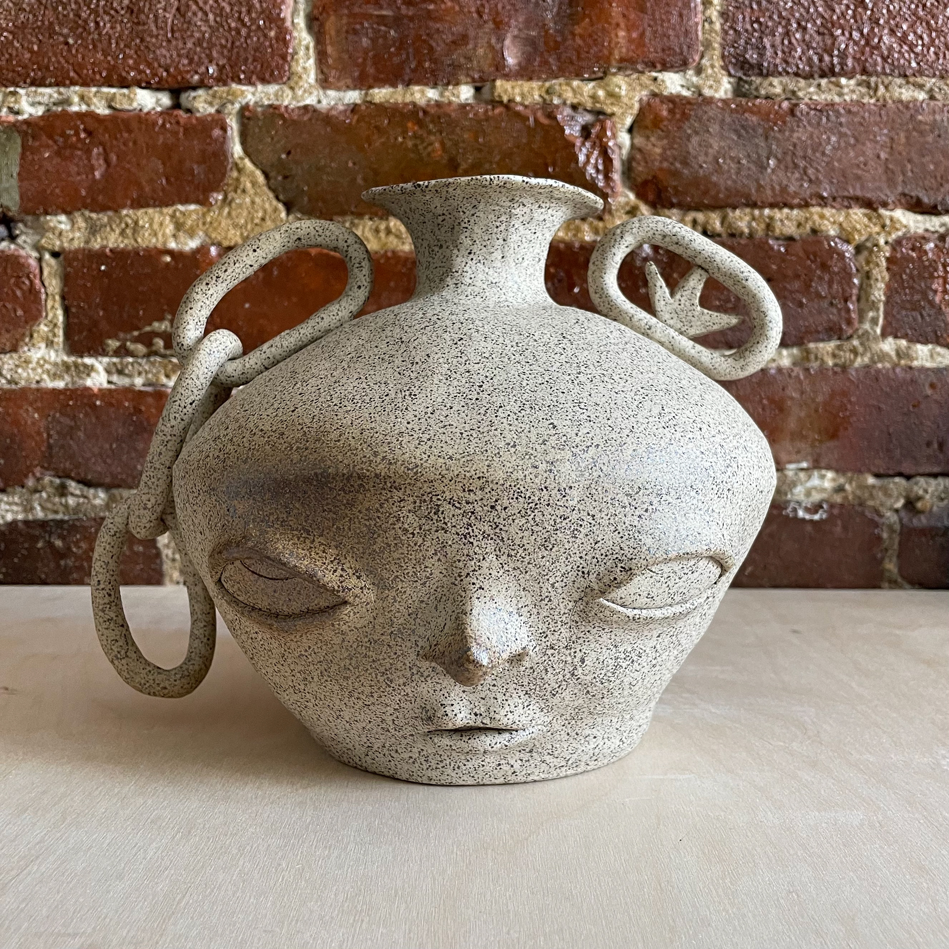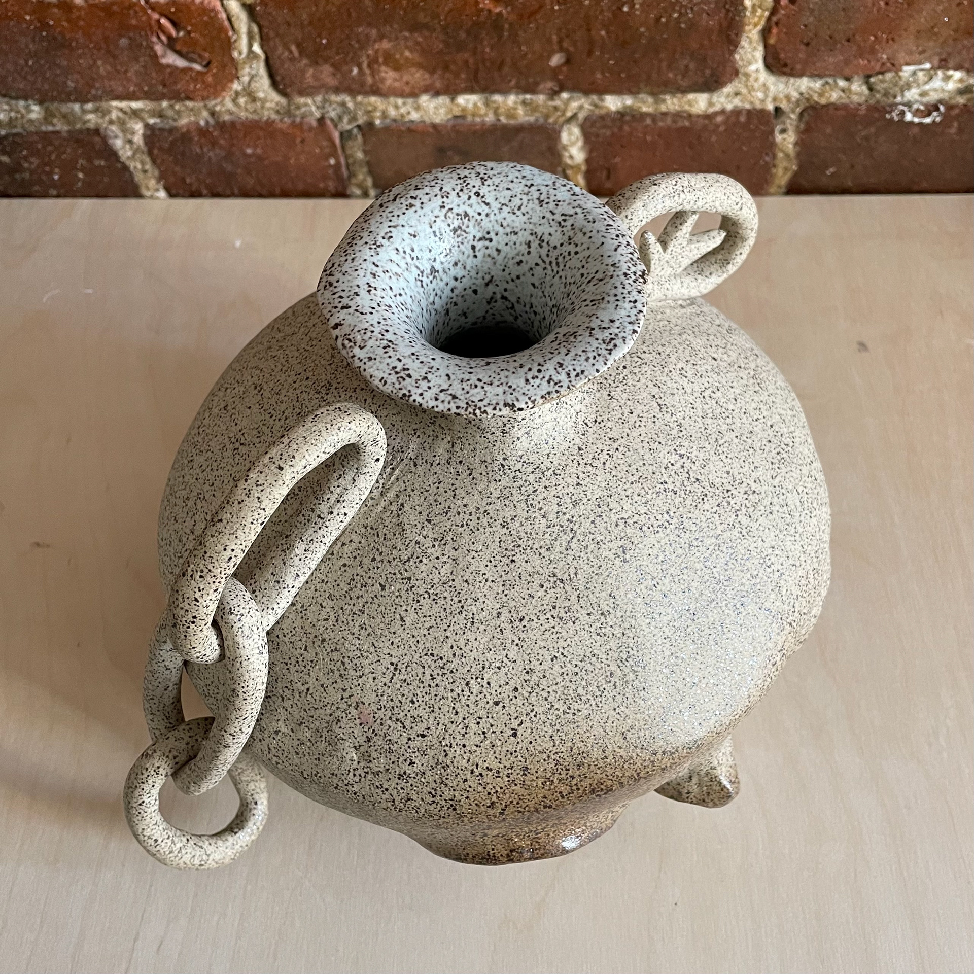 Cream Speckle Clay, Baby Blue Glaze Interior.