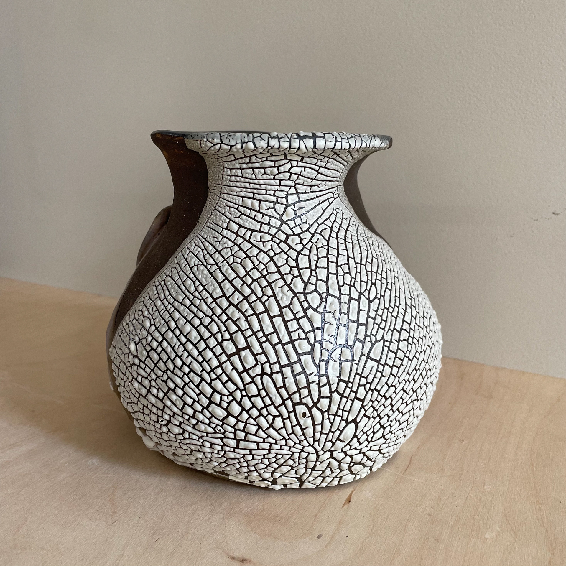 Reclaim & Dark Brown Clay, Crawl & Amethyst Exterior Glaze, Charcoal Satin Interior Glaze